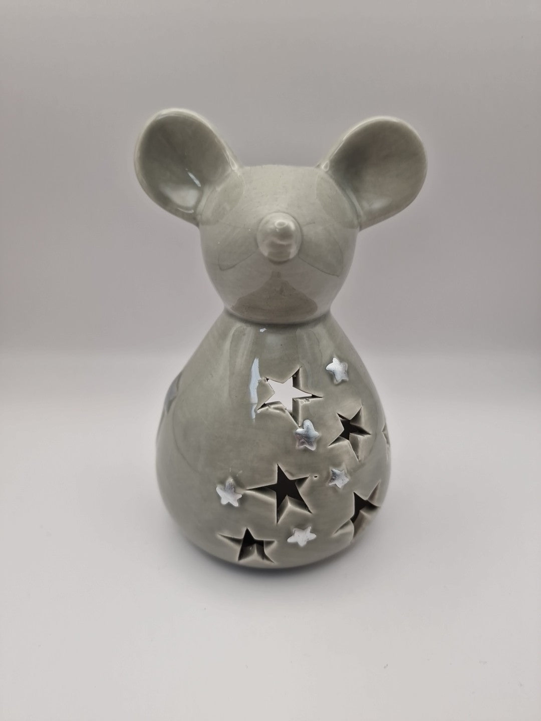 Daliwr Tealight Llygoden Ceramig Llwyd