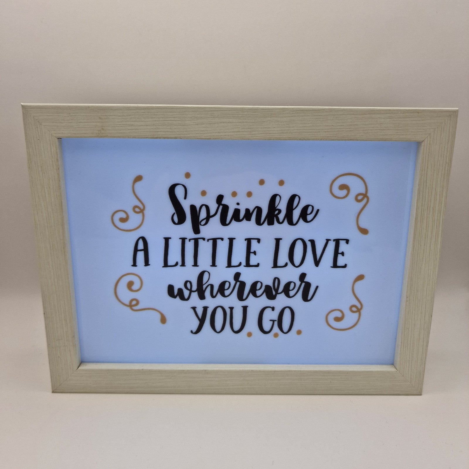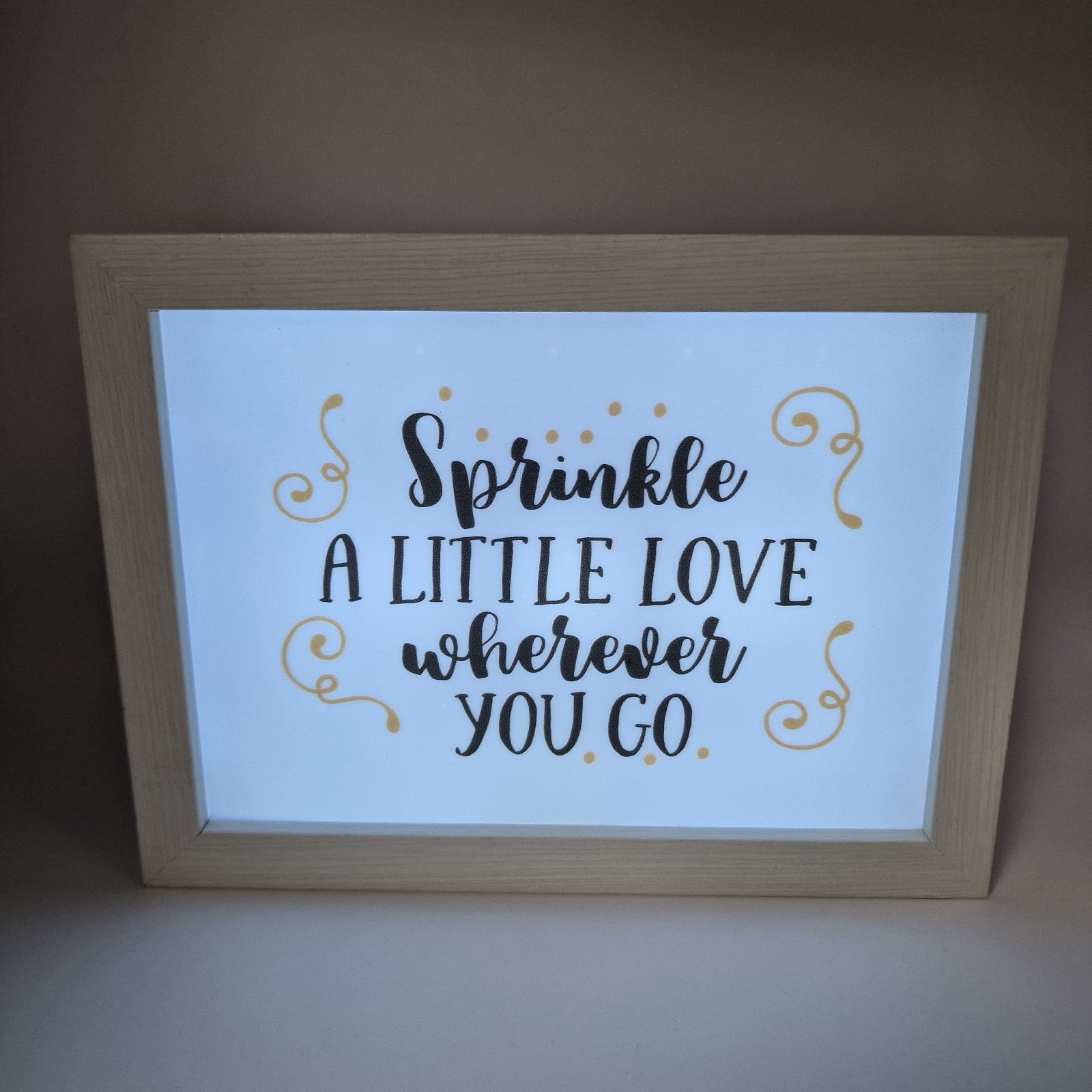 Goleuwch eich gofod gyda'r "taenellwch ychydig o gariad ble bynnag yr ewch" Light Up Box, darn swynol a chyfoes o gelf wal sy'n dod â chyffyrddiad o gynhesrwydd i unrhyw ystafell. Wedi'i saernïo o bren o ansawdd, mae'r blwch golau hirsgwar hwn wedi'i gynllunio i ddarparu llewyrch meddal, deniadol, perffaith ar gyfer creu awyrgylch clyd.