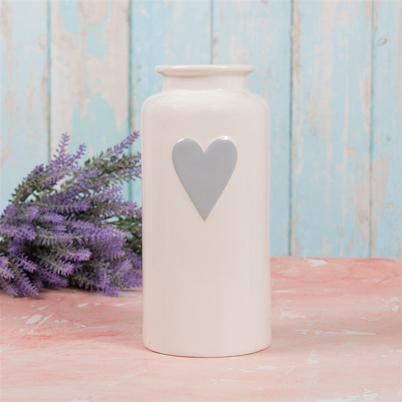 Crafted from high-quality ceramic, this charming white vase showcases a unique heart shape that brings a touch of elegance and simplicity to any room. The pure white hue of the vase provides a versatile backdrop, allowing it to seamlessly blend with a variety of decors, while the grey heart detail adds a subtle hint of character.